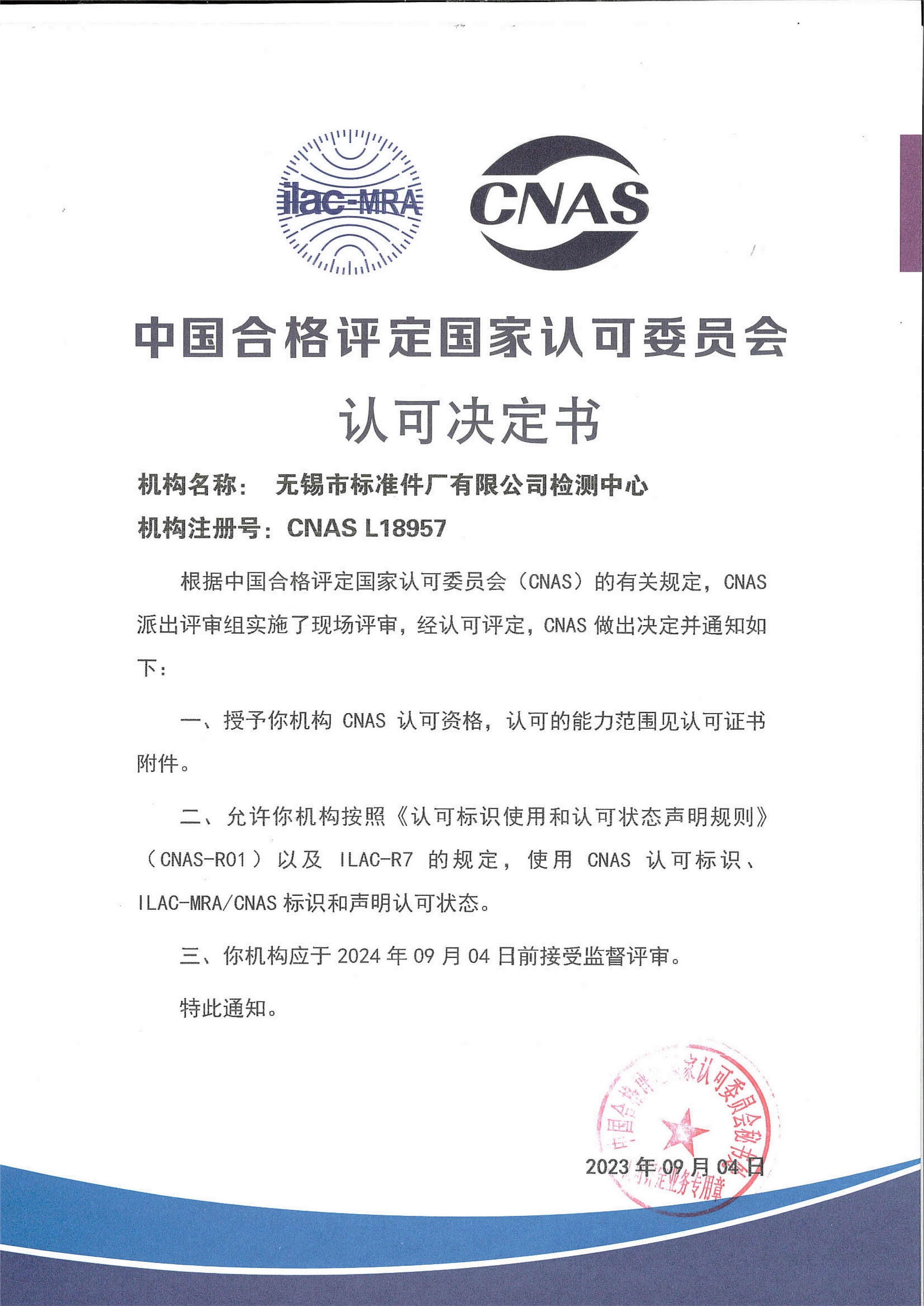 热烈庆祝公司荣获“CNAS 实验室认可证书”